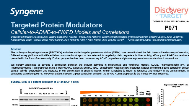 Presenting the cellular translation to degradation and functional response across different assay platforms using a PROTAC tool SynTAC-ERD, an Estrogen Receptor (ER) degrader.