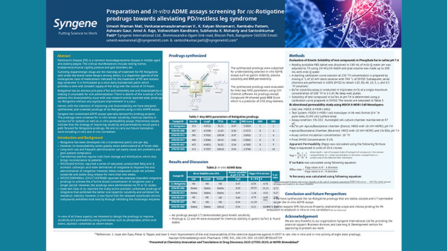 Learn how Syngene customized ADME assays to identify rac-Rotigotine prodrugs with enhanced bioavailability, which could be used for treating Parkinson’s disease and restless leg syndrome.