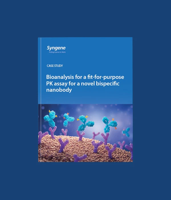 Syngene’s large molecule bioanalysis team adopted a stepwise experimental strategy to stabilize the method and extend the dynamic range so it would function as a fit-for-purpose PK assay for the bispecific nanobody.