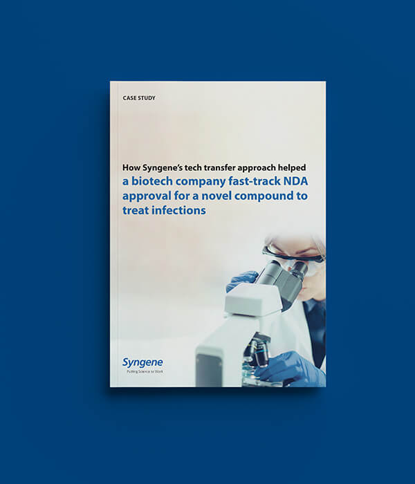 Using an in-depth risk assessment and control strategy, we successfully transferred the manufacturing process for the drug from the client’s site to Syngene using just one batch. We did this by mapping the critical process parameters and devising an appropriate control strategy to ensure 100% ‘first-time-right’ technology transfer.