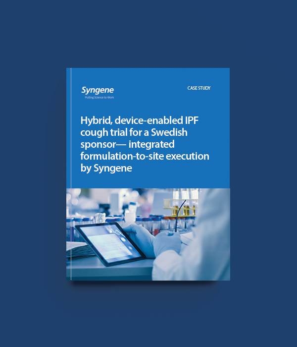 IPF patients live with a persistent, energy-sapping cough that conventional antitussives rarely address. The Sponsor is developing, an oral candidate to reduce cough counts in these patients. For its first India programme, the sponsor needed a partner who could connect “capsule to clinic” and run a device-anchored primary endpoint without drama. Syngene stepped in with an integrated, single-operator model to keep execution tight and timelines honest.