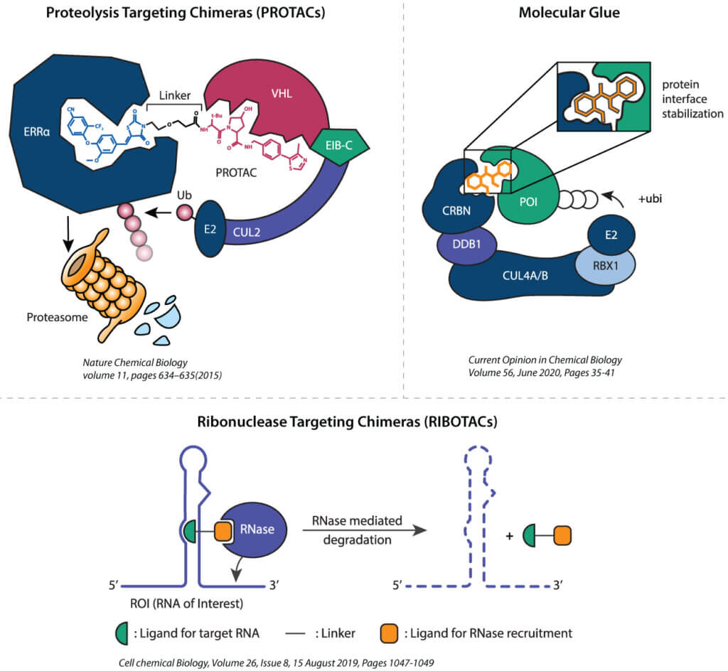 PROTACs are heterobifunctional molecules comprising a ligand targeting a protein of interest (POI) and a ligand targeting an E3 ligase with a connecting linker. This novel design utilizes the organism’s own ubiquitin-proteasome system and induces proximity between E3 ligases and POI, leading to its proteasomal degradation. PROTACs, differ from conventional small molecules in their catalytic mechanism by way of inducing the degradation of the target protein. PROTACs have demonstrated success and remarkable biological responses across challenging targets, including non-druggable targets.