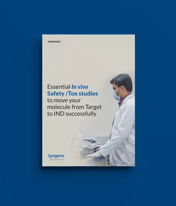 In this point of view, we discuss how Syngene’s expertise in In vivo Safety /Tox studies can help move your molecule from early discovery to IND stage successfully. With 27 years of scientific experience, working across 400+ global clients, we have been able to create a roadmap for IND-enabling preclinical studies, supported at each stage by a strong supply chain, logistics, program management, and data security. Read on.