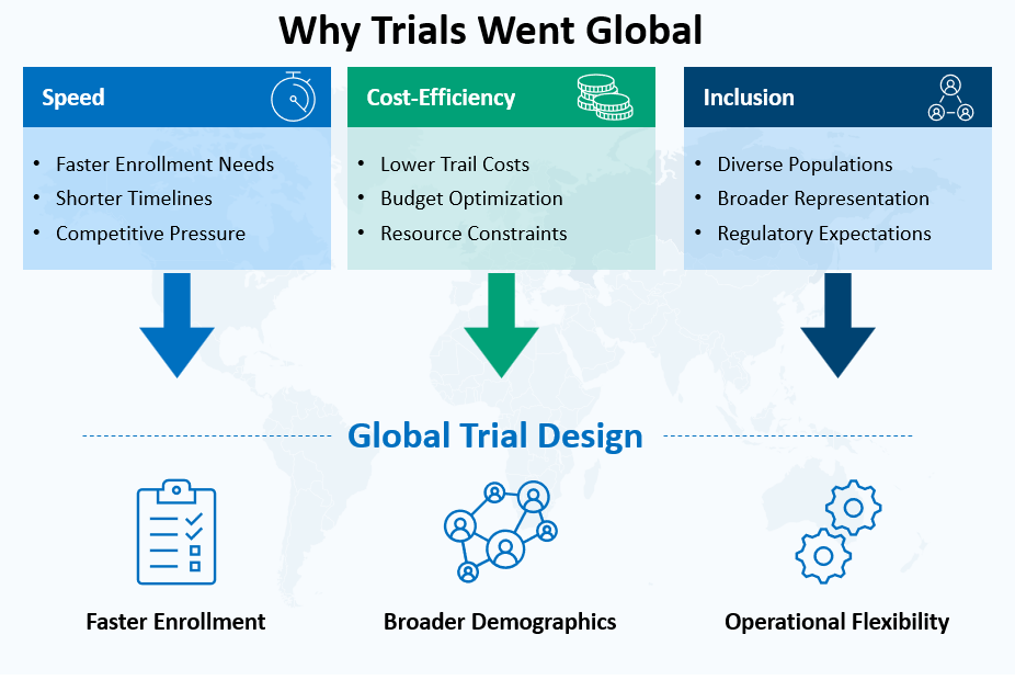 In this environment, global clinical trials have become essential. They help sponsors recruit faster, generate more representative evidence, and manage costs without losing scientific rigor. Many therapies now target populations that are spread across multiple regions. Even when a disease burden looks concentrated in one geography, regulators and payers often expect evidence that works across demographic groups, healthcare systems, and patterns of care.