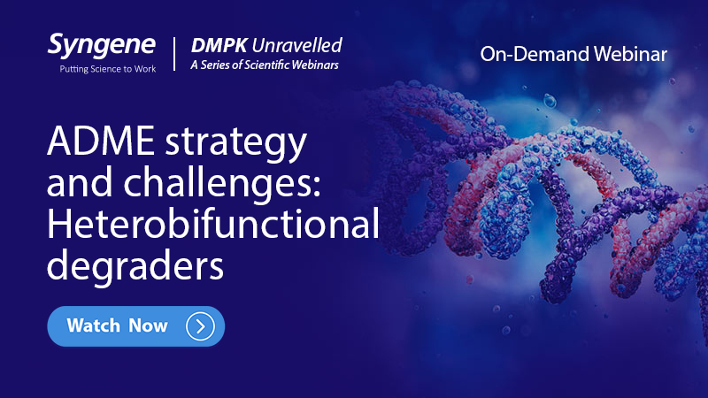 Heterobifunctional protein degraders like PROTACs are one of the most important types of targeted protein degraders. However, beyond the rule of 5 nature of these compounds introduces distinct ADME challenges not commonly encountered with smaller molecules. These challenges include poor solubility, low permeability, inadequate recoveries in in vitro ADME assays, high protein binding, and weak in vitro-to-in vivo correlation (IVIVC). This webinar focuses on ADME strategy and challenges in developing heterobifunctional degraders and the possible solutions to overcome hurdles.