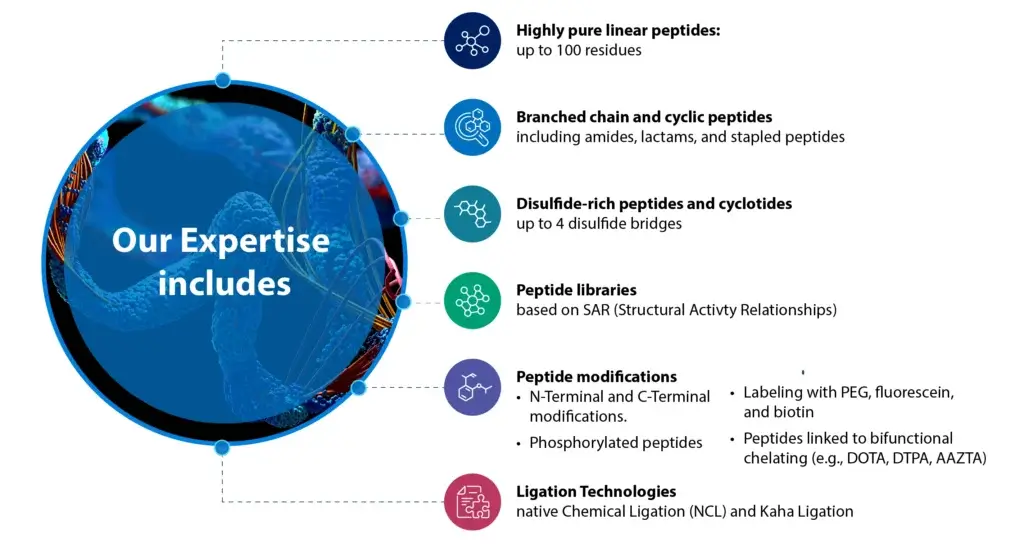 • Proven Track Record: Our team has extensive experience in peptide chemistry, from discovery to manufacturing.