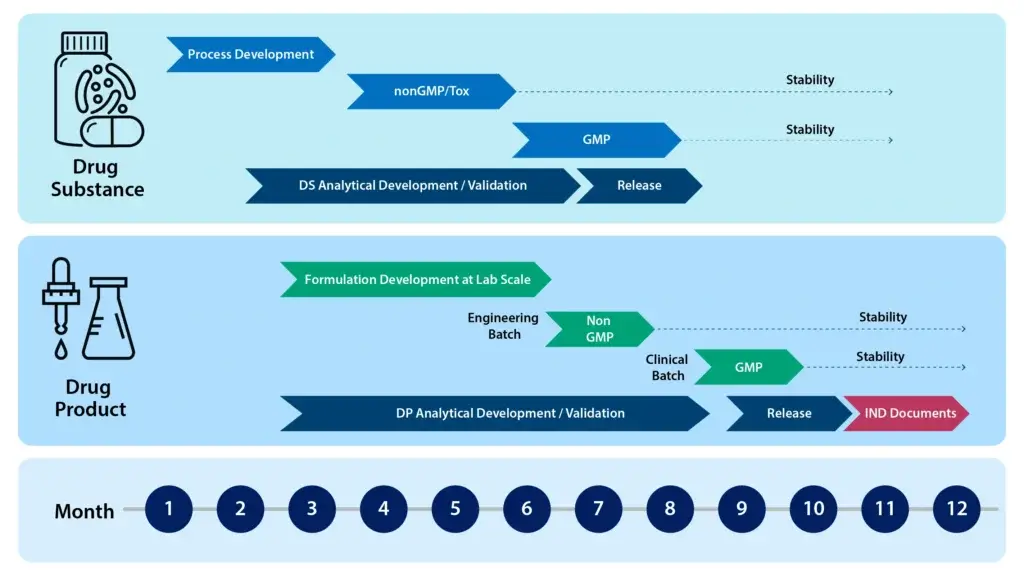 Our integrated program is designed to streamline the entire peptide drug development lifecycle. By co-locating development workflows for both Drug Substance (DS) and Drug Product (DP) within a single facility and under one quality system, we facilitate seamless knowledge transfer and significantly reduce timelines. This parallel approach enhances efficiency and provides a faster path to clinical and commercial supply.